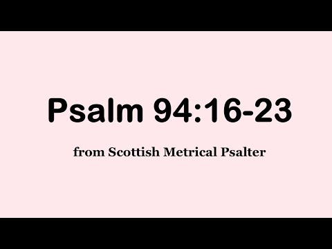 Sing Psalm 94:16-23 (Tune: St Matthew) Scottish Metrical Psalm 165016 Who will rise up for me againstthose that do wickedly?Who will stand up for me ‘gainst thosethat work iniquity?17 Unless the Lord had been my helpwhen I was sore oppressed,Almost my soul had in the houseof silence been at rest.18 When I had uttered this word,(my foot doth slip away,)Thy mercy held me up, O Lord,thy goodness did me stay.19 Amidst the multitude of thoughtswhich in my heart do fight,My soul, lest it be overcharged,thy comforts do delight.20 Shall of iniquity the thronehave fellowship with thee,Which mischief, cunningly contrived,doth by a law decree?21 Against the righteous souls they join,they guiltless blood condemn.22 But of my refuge God’s the rock,and my defense from them.23 On them their own iniquitythe Lord shall bring and lay,And cut them off in their own sin;our Lord God shall them slay.